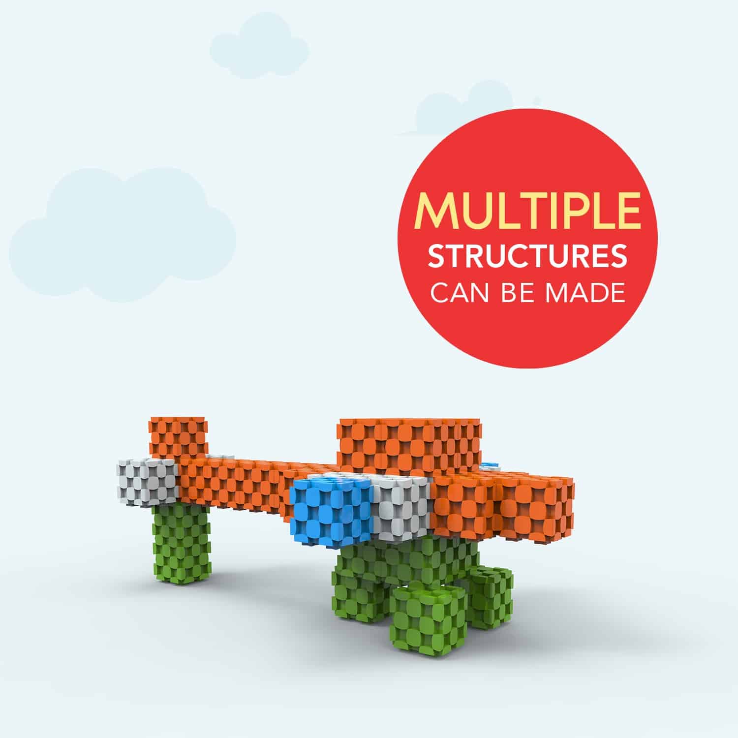 Unlike other building blocks which can only be attached vertically and horizontally, Sakara Cubes can also be attached diagonally. This unique feature allows children to create different, multiple and complex structures that helps explore their creativity and imagination without any limits.